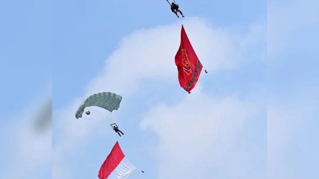 Aksi yang ditampilkan oleh para penerjun payung ini menjadi simbol ketangguhan dan keterampilan yang dimiliki oleh prajurit TNI, sekaligus sebagai bentuk penghormatan kepada semangat Sapta Marga dan pengabdian TNI kepada bangsa dan Negara. (Penkostrad).