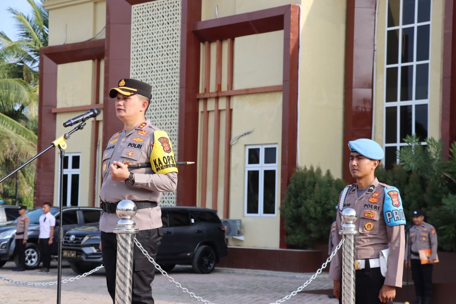 Kapolres Pidie Jaya AKBP Ahmad Faisal Pasaribu, S.H., S.I.K., M.H. memimpin langsung apel ini, didampingi oleh Wakapolres Kompol Muara Uli Saut Hamonangan, S.E., M.M., serta Pejabat Utama (PJU) Polres dan Kapolsek jajaran. Kabag Ops Kompol Teuku Muhammad, S.H. bertindak sebagai Perwira Apel, sementara Kaurbinopsnal Satsamapta Ipda Mustafa menjadi Komandan Apel.