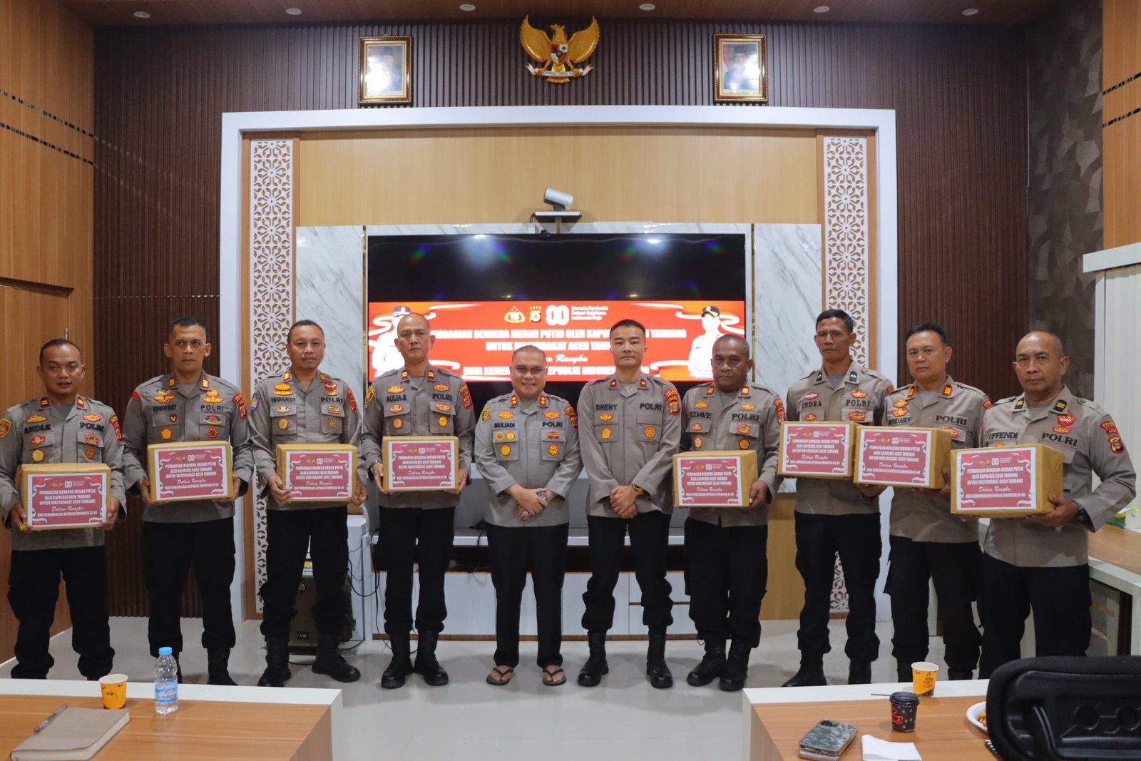 Aceh Tamiang – PSIKODAY.COM | Dalam rangka menyambut hari Kemerdekaan Republik Indonesia yang ke-80, Kapolres Aceh Tamiang AKBP Muliadi, S.H, M.H didampingi Wakapolres KOMPOL Dheny Firmandika, S.AB, S.I.K membagikan bendera merah putih kepada Kapolsek Jajaran untuk dibagikan ke masyarakat. Senin 4 Agustus 2025.