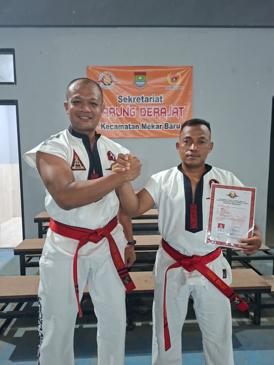 Tangerang (07/12/2025) – Pelatih Tarung Derajat Satuan Latihan (Satlat) Kecamatan Mekar Baru, Kabupaten Tangerang, Kang Satiri, S.Pd.I, resmi menyandang sabuk merah Kurata VI setelah dinyatakan lulus ujian kenaikan tingkat yang digelar di Perguruan Pusat Tarung Derajat, Bandung, pada 25–26 Oktober 2025.