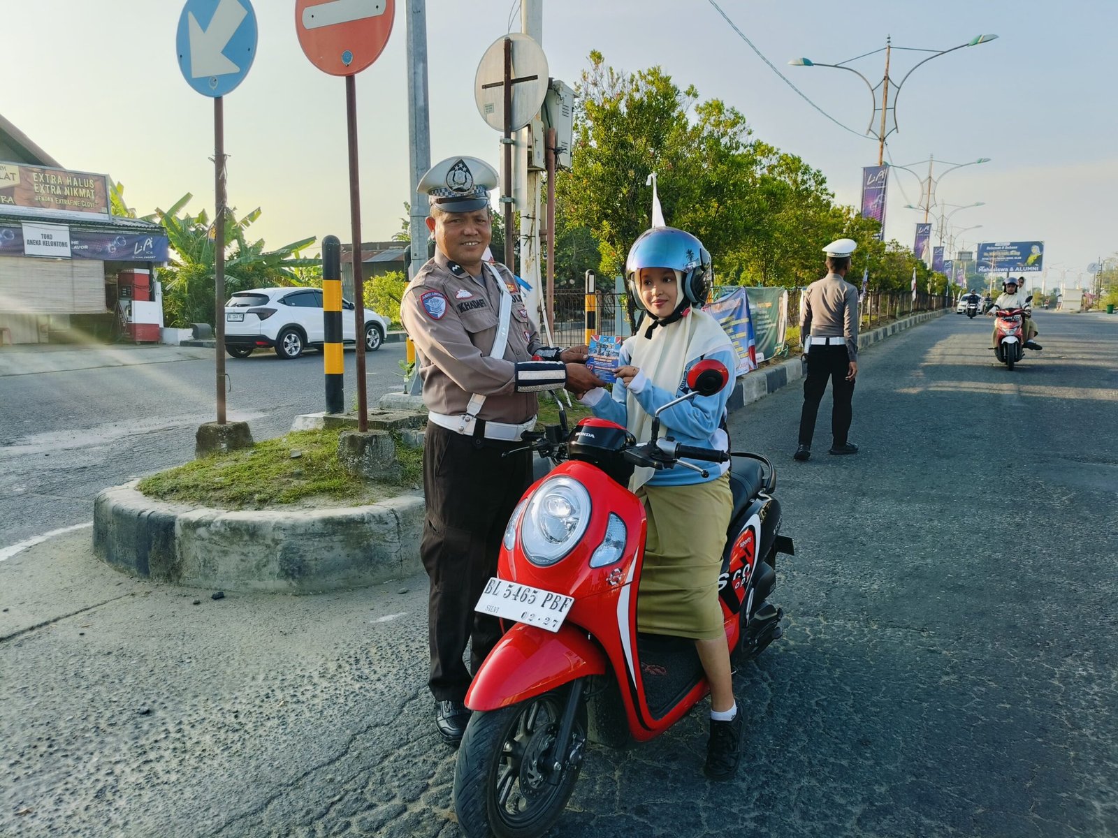 Kapolres Pidie AKBP Jaka Mulyana, SIK, MIK melalui Kasat Lantas Iptu Muhammad Gifari Syarifuddin, STrK, SIK, M.Si kepada wartawan menyampaikan pembagian brosur dan stiker tertib berlalu lintas salah satu upaya Satlantas Polres Pidie untuk mensukseskan pelaksanaan Operasi Keselamatan Seulawah 2025 dalam menekan angka kecelakaan lalu lintas di wilayah hukum Polres Pidie.