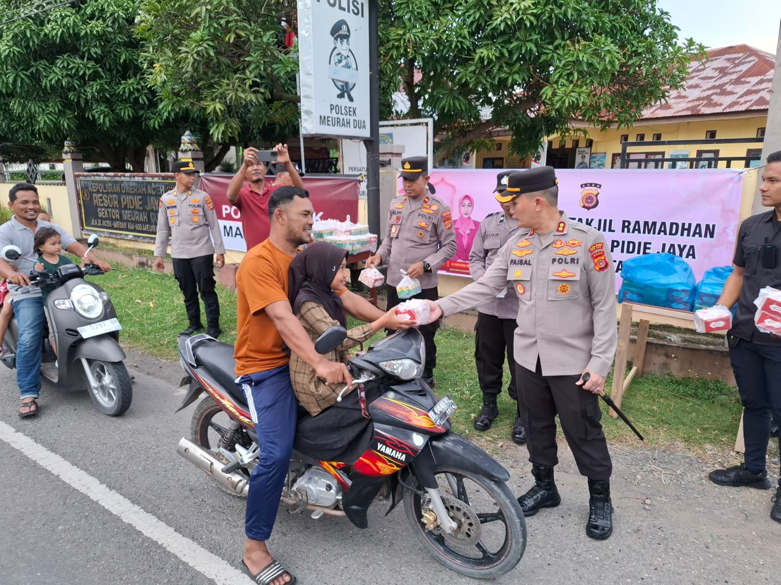 PIDIE JAYA – PSIKODAY.COM | Dalam semangat kebersamaan di bulan suci Ramadhan 1446 H Tahun 2025, Kapolres Pidie Jaya, AKBP Ahmah Faisal Pasaribu, S.H., S.I.K., M.H., bersama Polsek Meurah Dua menggelar kegiatan pembagian Takjil.