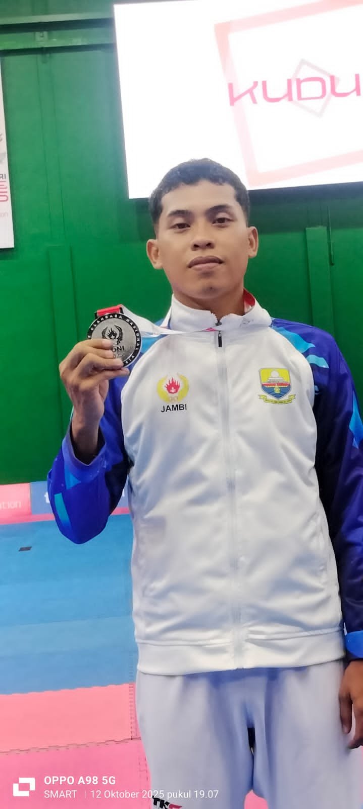 Ketua Kontingen Jambi PON Bela Diri 2025, AS Budianto mengatakan medali perak pertama Jambi diraih dari cabang olahraga taekwondo atas nama M Wijaya Hamzah.